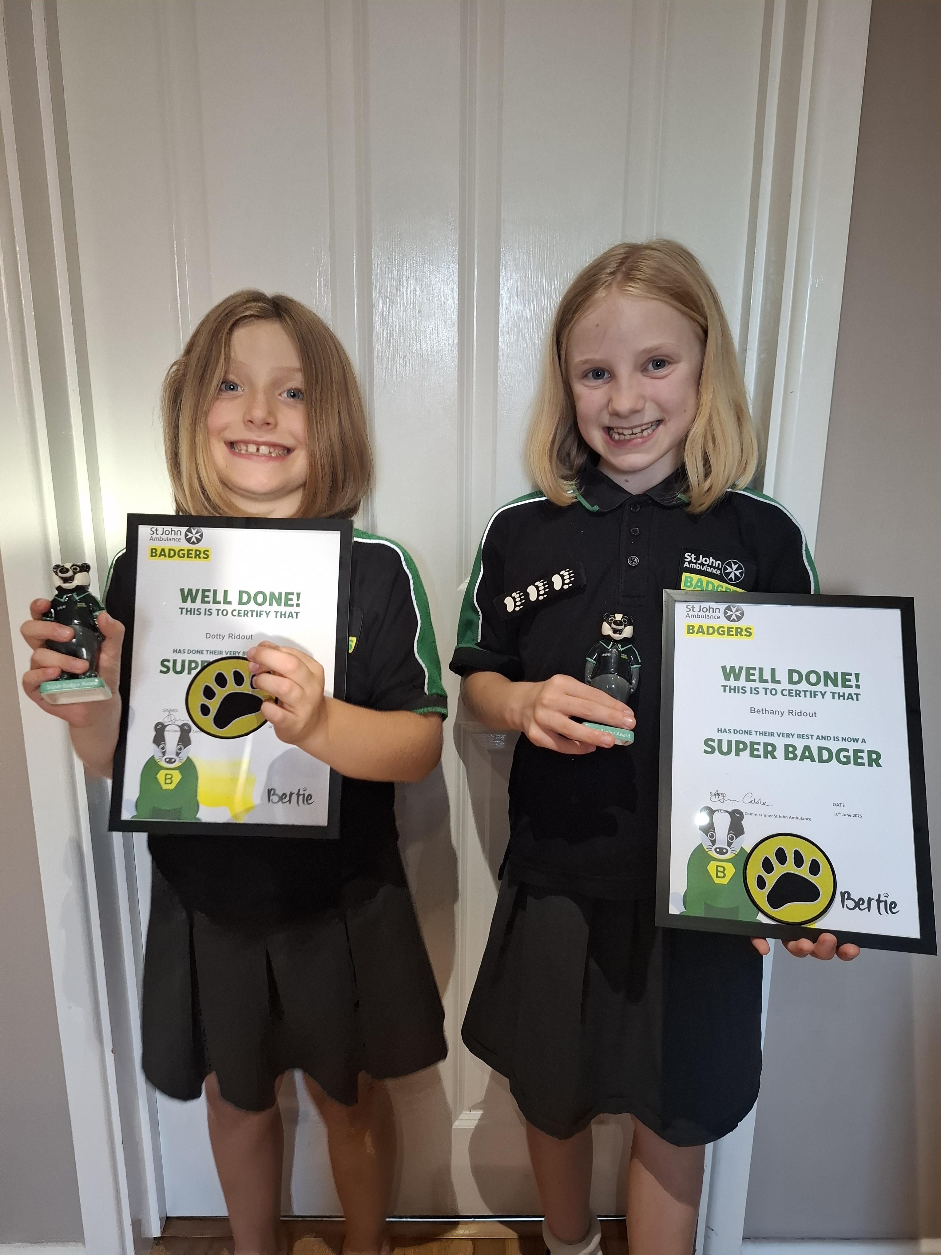 Super Badger Awards; Sisters - Bethany R (4S) and Dotty R (2R)