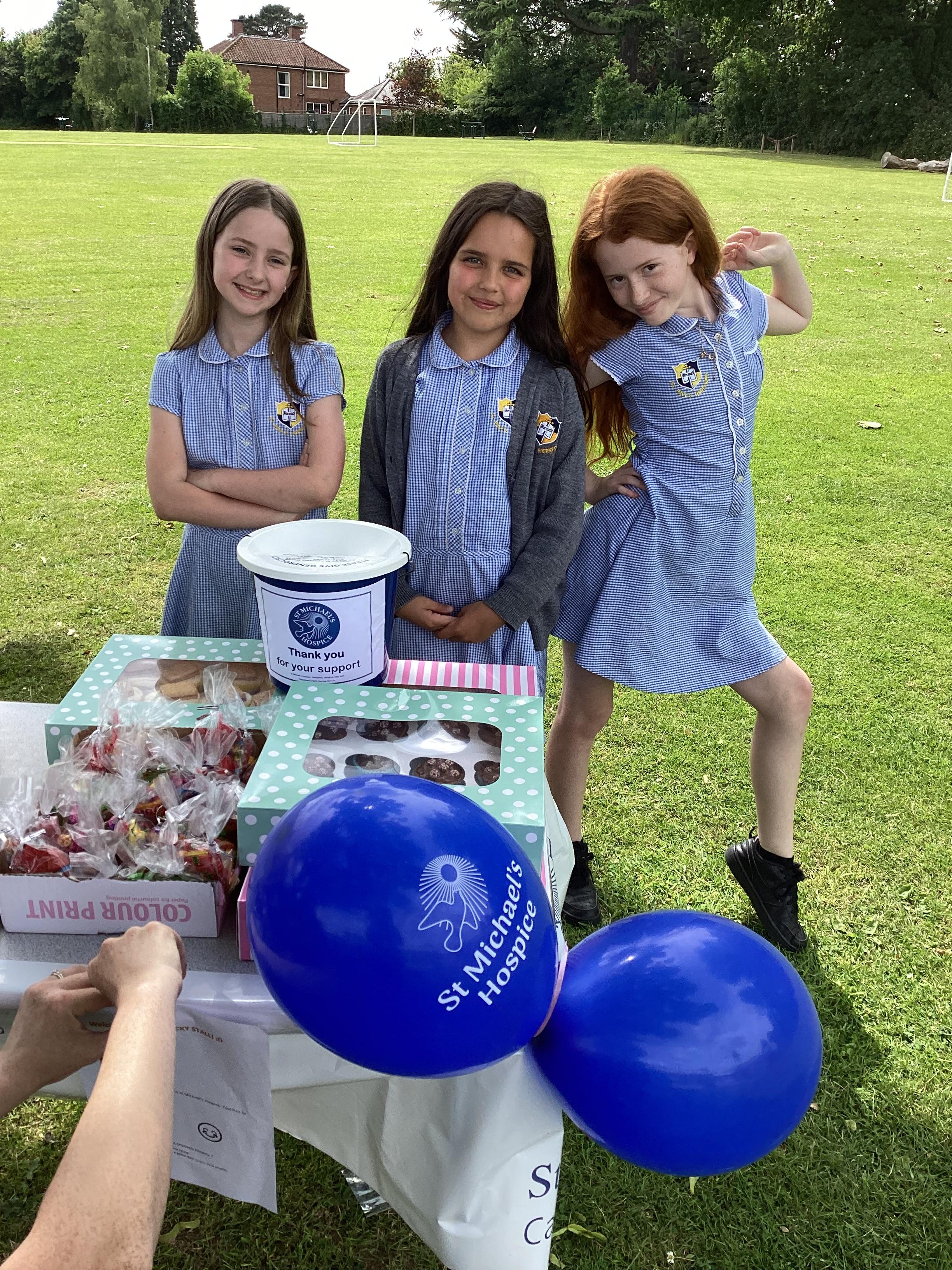 Katy, Rosie and Sophie raising money for the school!