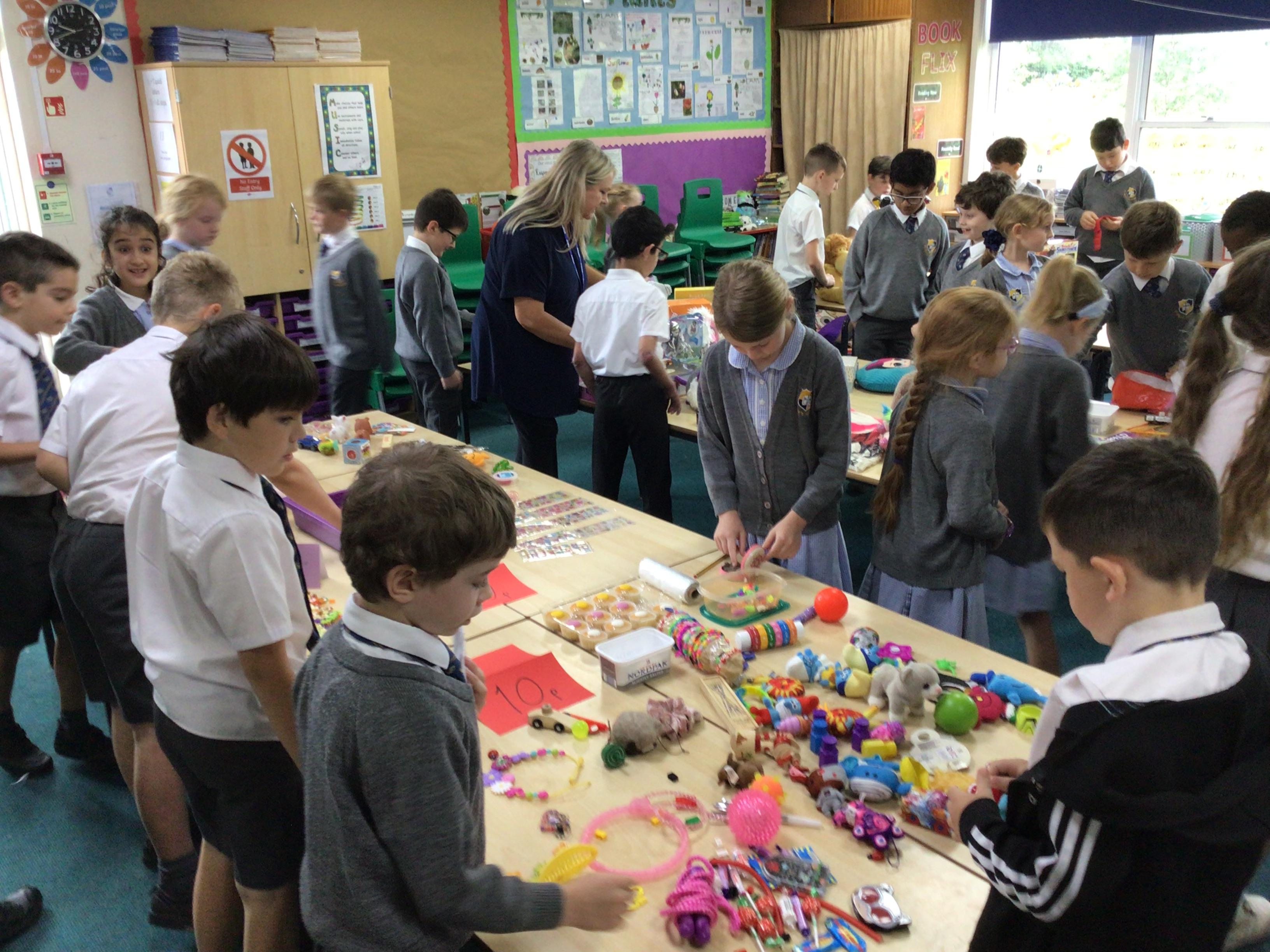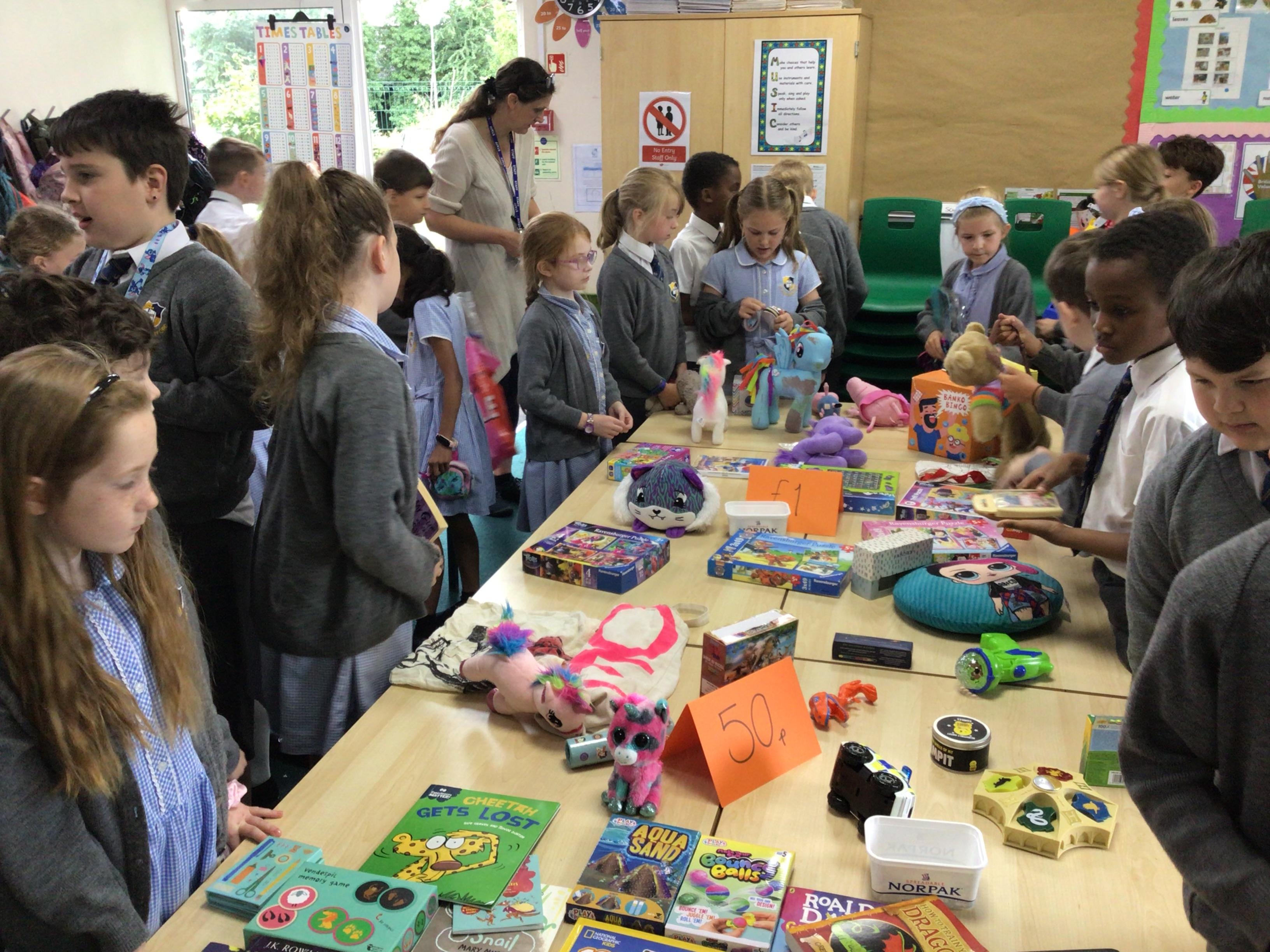 The School council organised a vote to decide which local charities the children would like to support this year. Groups spoke well in assembly, to explain why people should vote for a charity which is important to them. St Michael's Hospice, Many Tears (an animal charity) and Cancer Research were chosen. A giant Bring and Buy Sale will be organised before Christmas.
