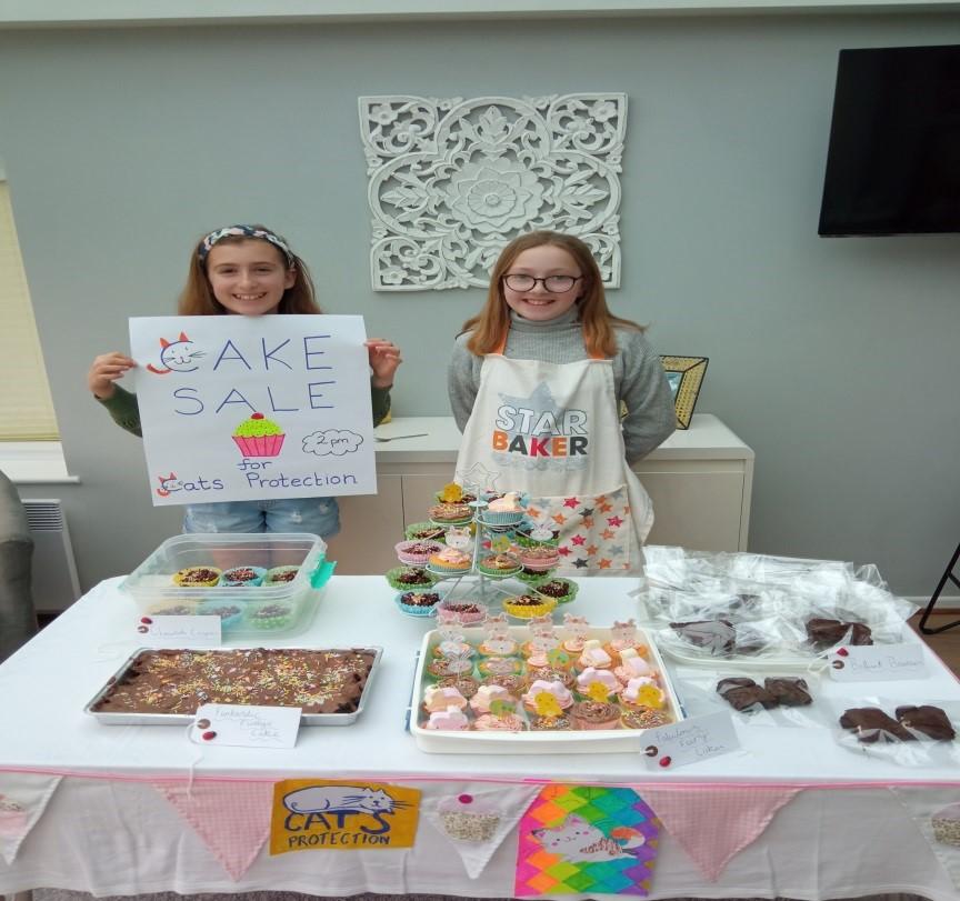 On Friday 14th April 2023, Amelia and Erin held a cake sale at Erin’s house to raise money for the Cats Protection.