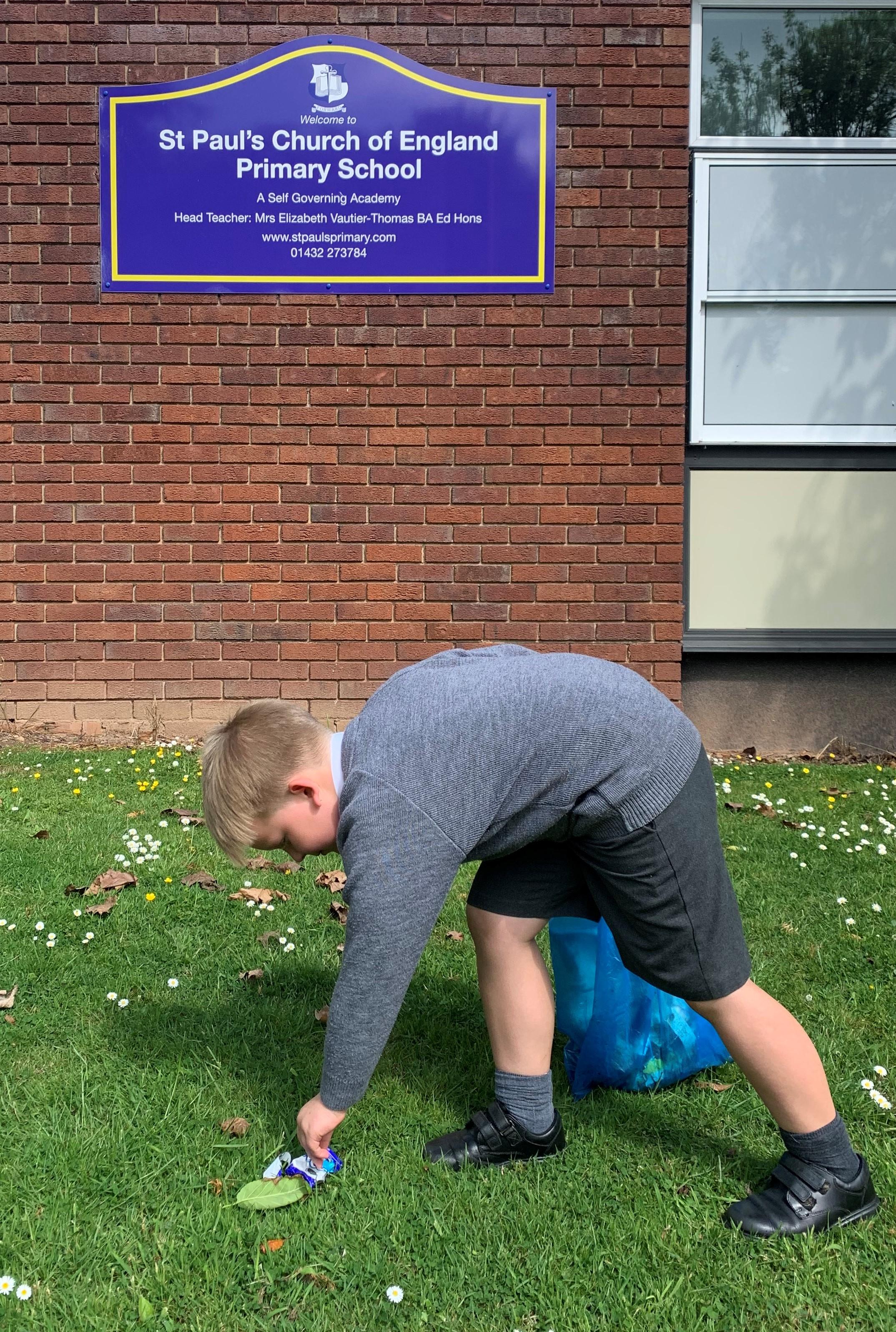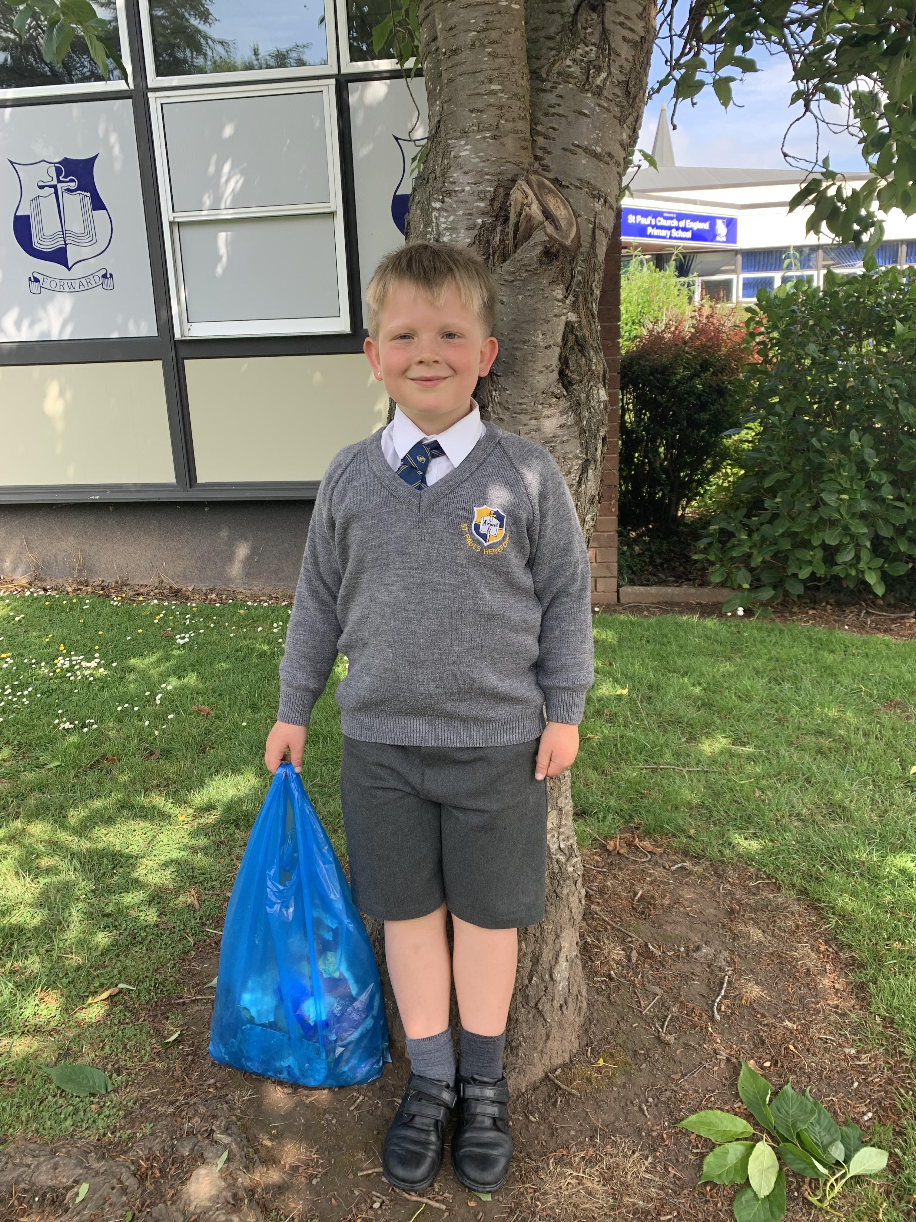 Albert Cartwright arrived at school this morning with a blue carrier bag full of rubbish that he had kindly collected from our local community. Albert is very keen on keeping the animals safe both on land and in the ocean. Well done Albert, you certainly deserve a place on the Community Champions web page!
