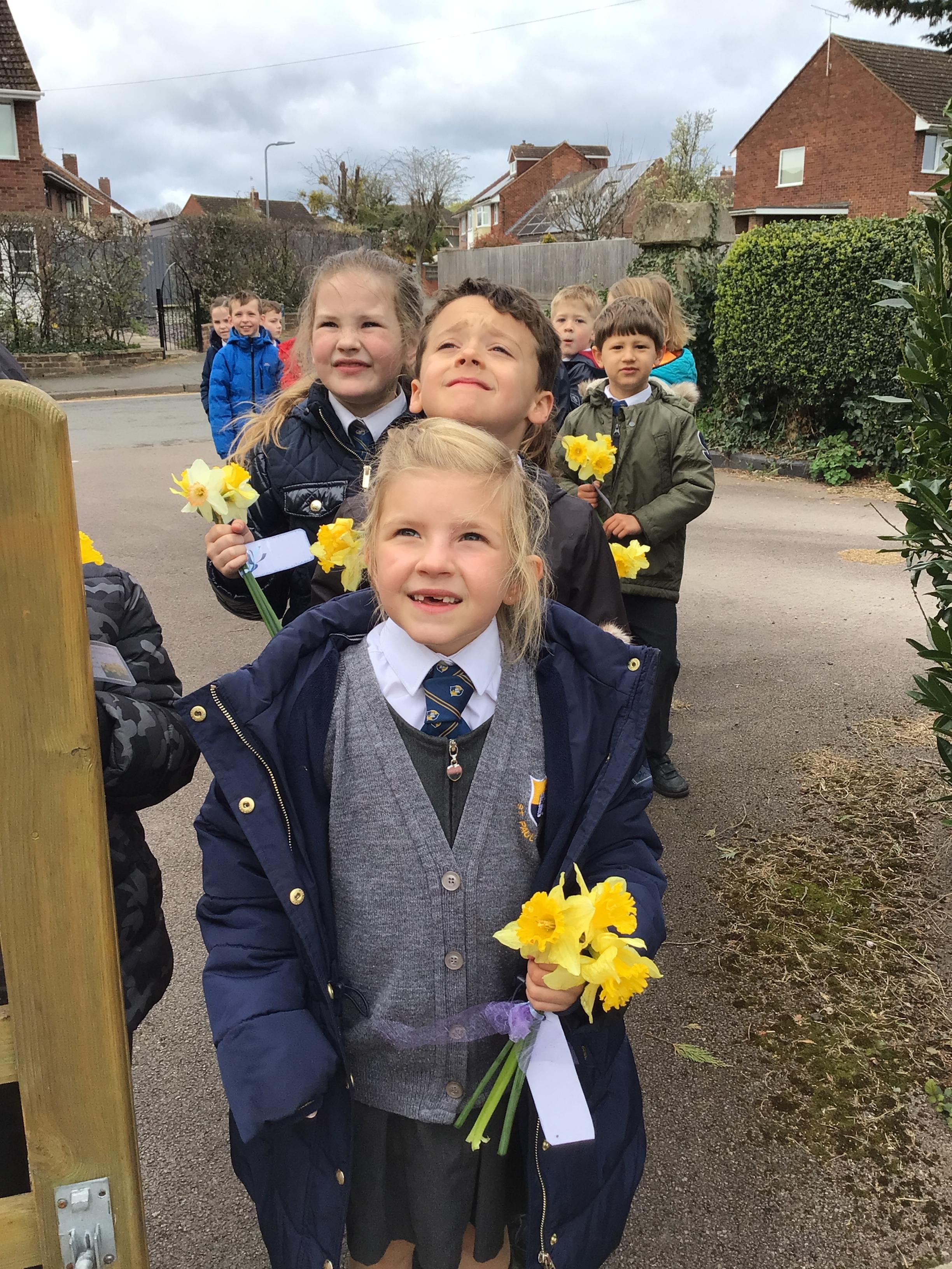 Residents near to the school were given little bunches of daffodils to say Happy Easter and a tag that thanked everyone for supporting us.